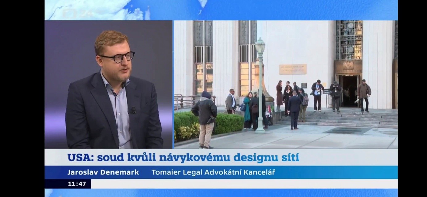 Náš kolega Jaroslav Denemark byl dne 19. února 2026 opět hostem zpravodajského kanálu ČT24, kde komentoval aktuální žalobu projednávanou před americkým soudem proti společnosti Meta. Spor se týká tvrzené újmy na psychickém zdraví nezletilé uživatelky sociálních sítí.